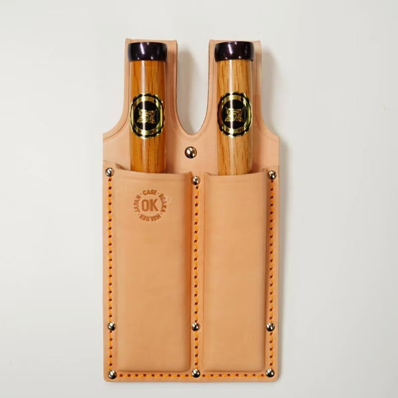 Cet étui OK en cuir véritable est conçu pour transporter deux ciseaux japonais (nomi = ciseau traditionnel pour le bois). Il permet de garder vos outils protégés et accessibles pendant le travail, grâce à une fixation robuste à la ceinture. Le modèle présenté est destiné aux ciseaux de 30 mm et 42 mm de largeur de lame, les tailles les plus courantes pour la menuiserie et l’assemblage.