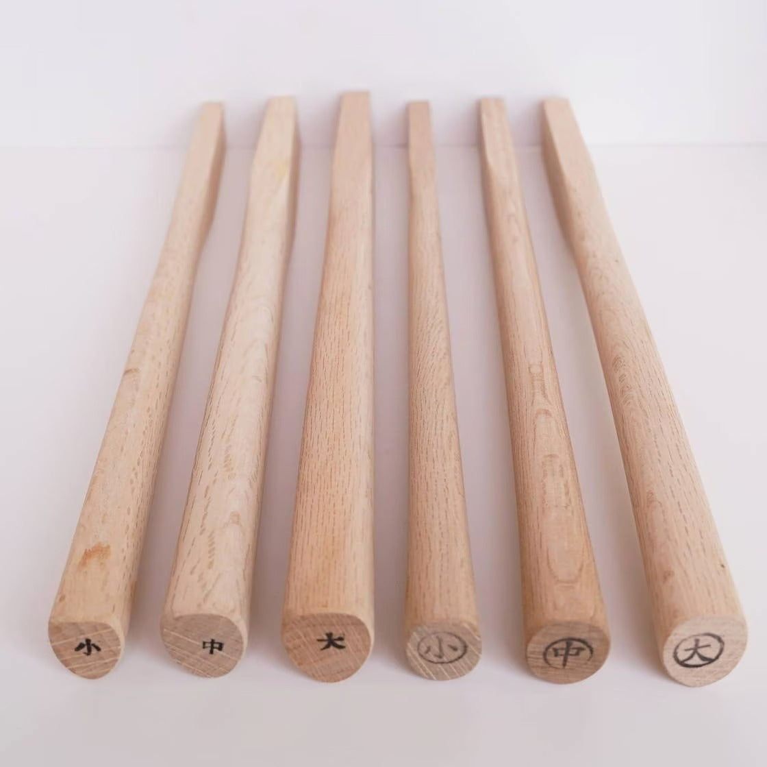 This Japanese hammer handle, made of Japanese white oak (shirakashi), is designed for traditional genno hammer heads. White oak is prized for its strength, shock resistance, and ability to transmit the strike in a stable and precise manner.