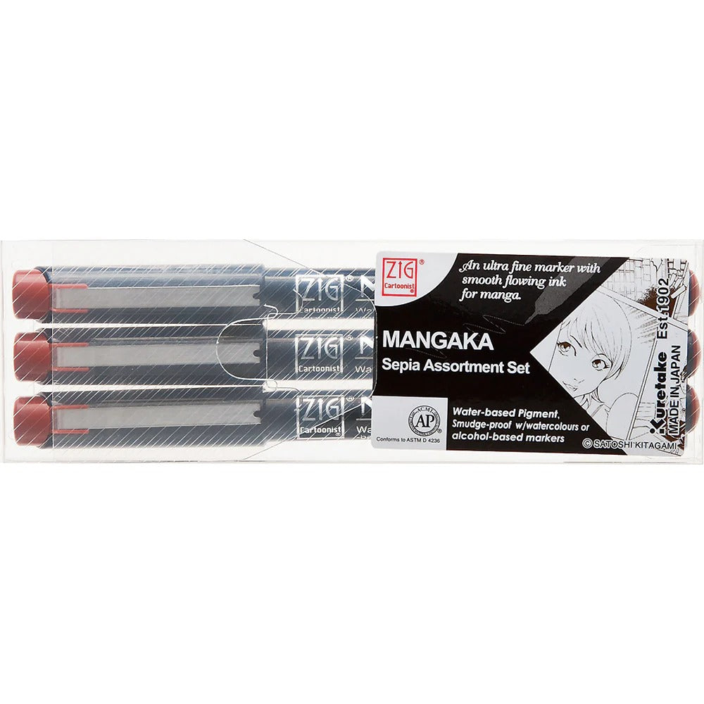 ZIG Cartoonist MANGAKA – Set of 3 sepia pens for manga & illustration (CNM/3VSP)