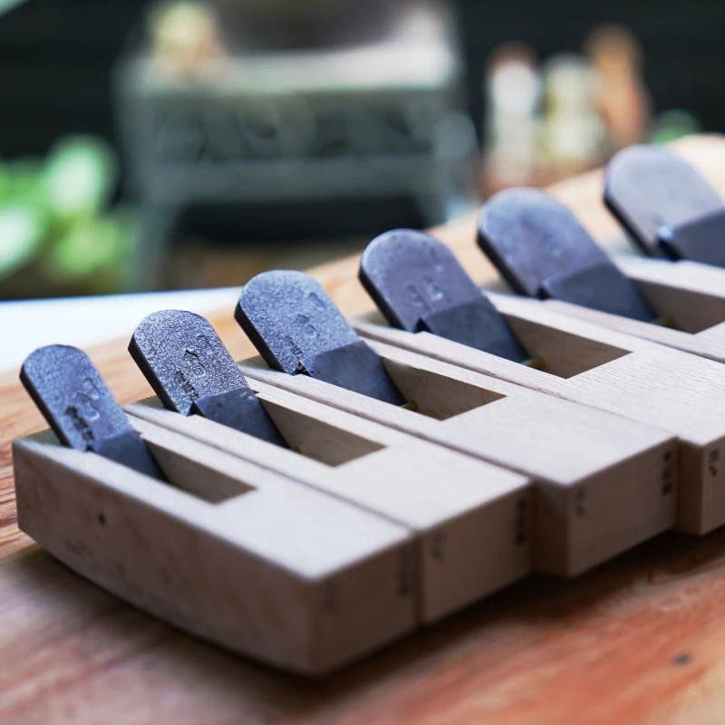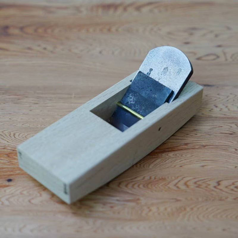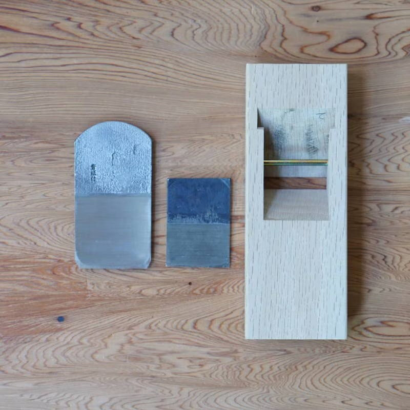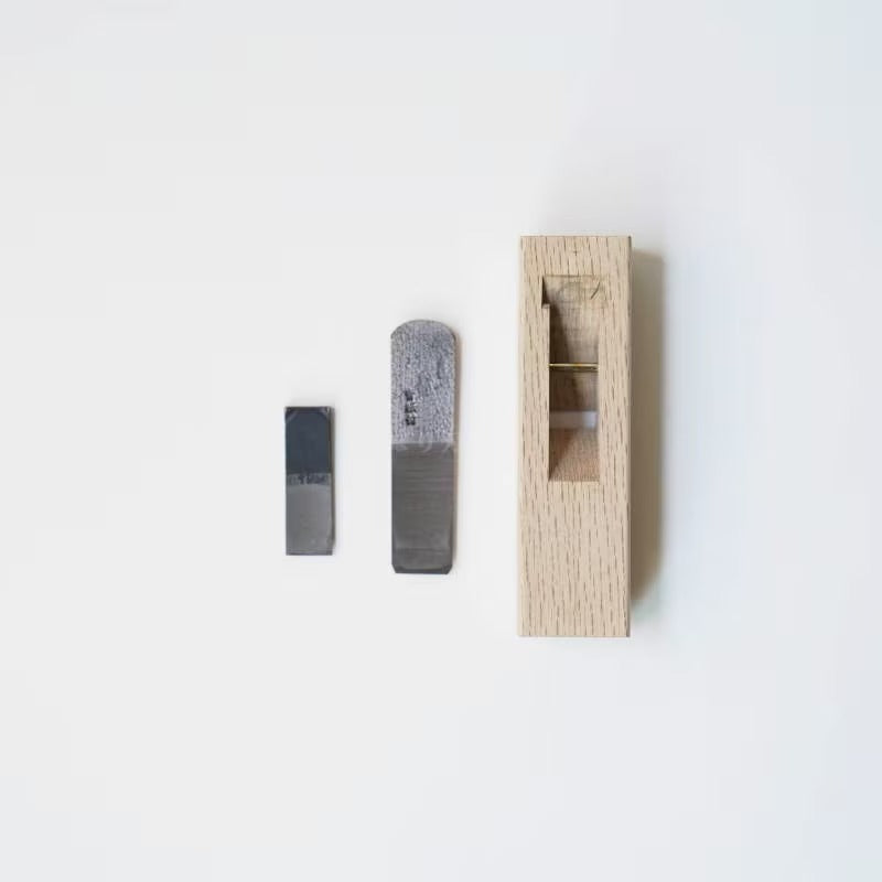 La lame est forgée en Blue Steel #1, un acier japonais de haute qualité offrant un tranchant durable, une excellente pénétration et une résistance à l’usure bien supérieure à celle des aciers classiques. Le corps du rabot est réalisé en chêne blanc japonais, un bois dense et stable, très apprécié pour sa capacité à transmettre la force de coupe tout en conservant une bonne sensibilité dans les mains de l’artisan. Comme pour tous les rabots japonais traditionnels, ce modèle n’est pas prêt à l’emploi : il nécessite un affûtage initial et une mise en bois précise pour révéler tout son potentiel.