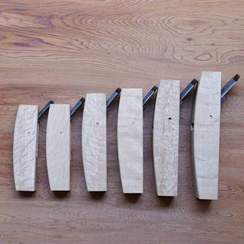 Chaque rabot est fabriqué à la main, ce qui entraîne de légères variations sur la finition, les détails et les dimensions. Plusieurs largeurs sont disponibles, allant de 18 mm à 48 mm, chacune montée sur un corps adapté à sa taille. Les petites tailles conviennent aux travaux délicats, aux chanfreins courbes et aux zones étroites, tandis que les largeurs plus importantes permettent de travailler des surfaces arrondies plus larges ou des éléments de mobilier nécessitant une courbure régulière.