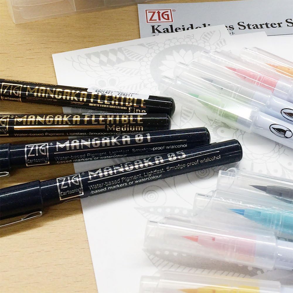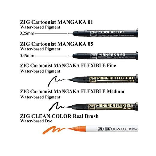 - ZIG Cartoonist MANGAKA Flexible Fine Black – stylo flexible pour remplissage, encre pigmentée à base d’eau