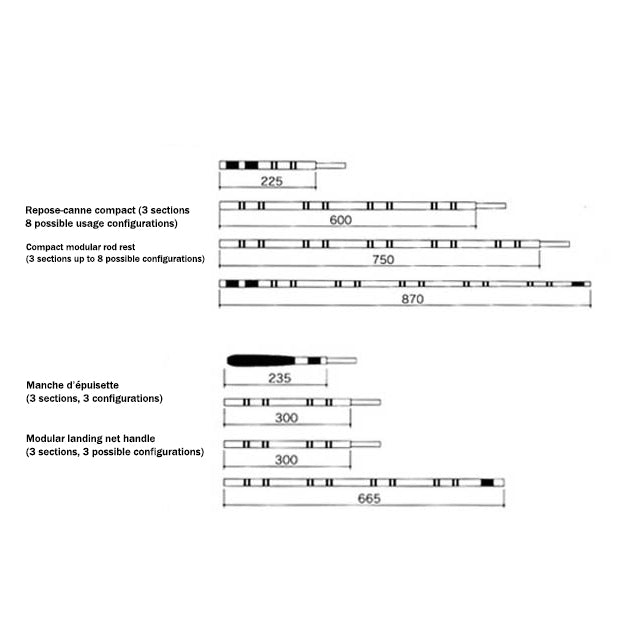 - Manche d’épuisette 3 sections (3 configurations d’usage annoncées)
