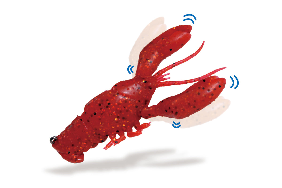 Grâce à son hameçon jig intégré et dissimulé, le Sleeper Craw offre une excellente résistance aux accrochages tout en garantissant un ferrage efficace. Ses pinces flottantes se dressent naturellement à l’arrêt sur le fond, reproduisant fidèlement la posture défensive d’une écrevisse vivante.