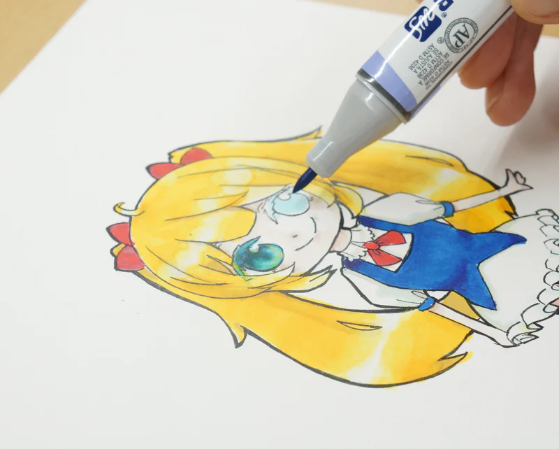 - 138 marqueurs : 135 couleurs + blender (noir et blender en double)
